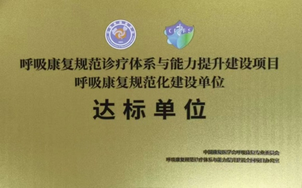 山东第一医科大学附属省立医院荣获全国首批“呼吸康复规范化建设达标单位”